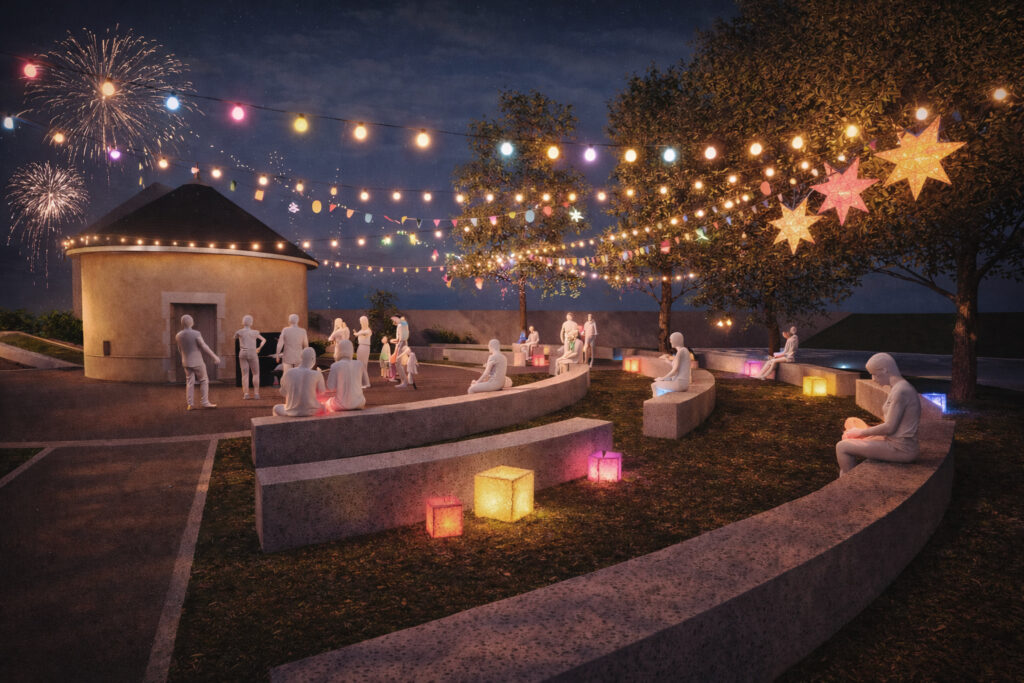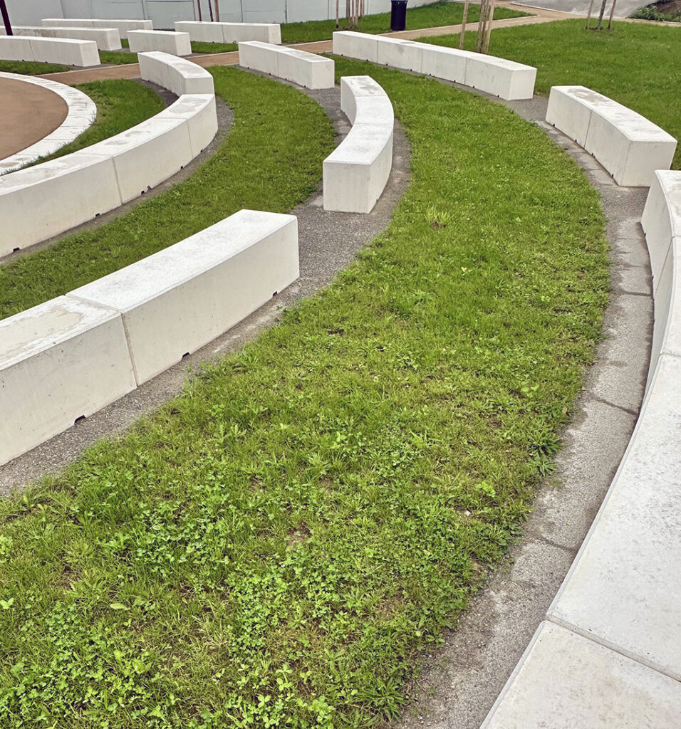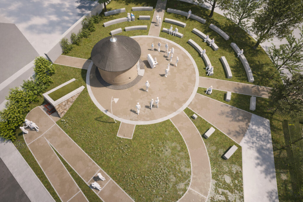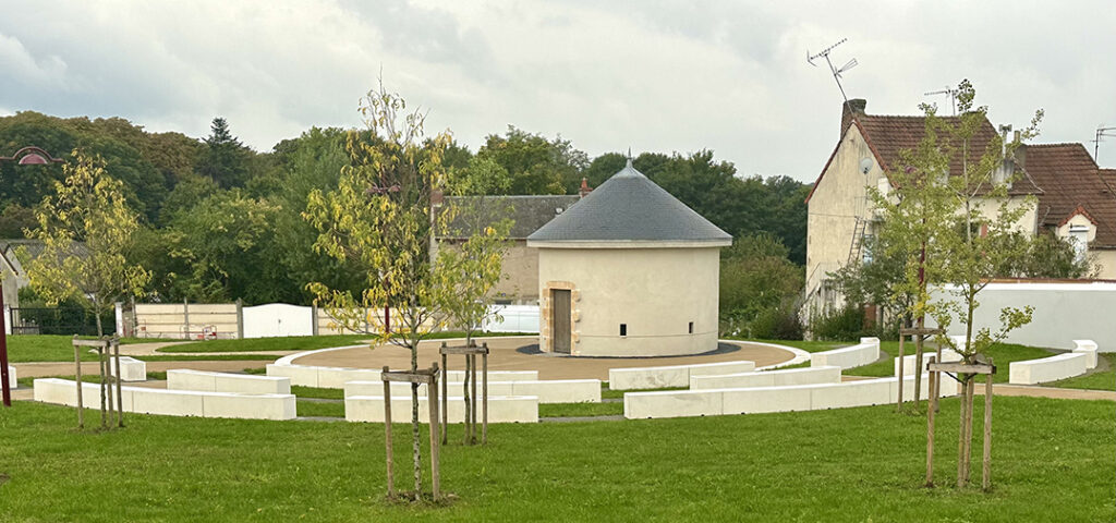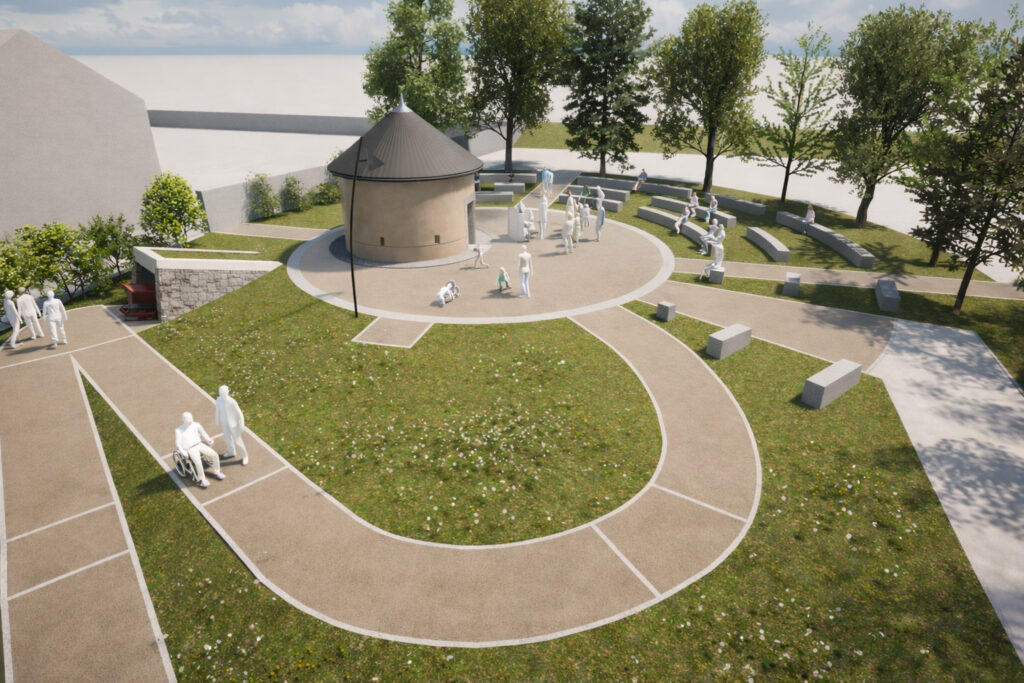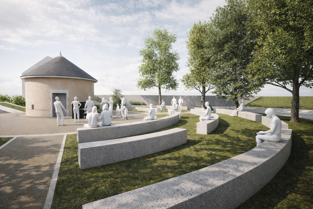 Aménagement paysager Robert Mâle - rue Denis PapinConstruction d'un fac-similé d'une poudrière et d'une fausse entrée de mine.